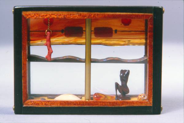 Medium: ebony, orange cocobolo, brass, glass, pine, watercolors