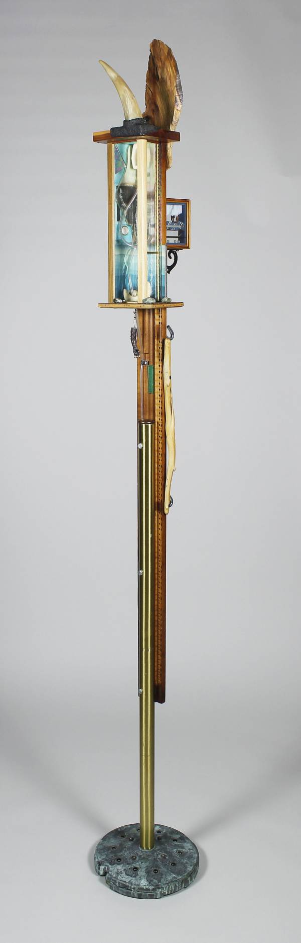 - Medium: mixed woods, glass, mixed metals, prints, horn, bronze
