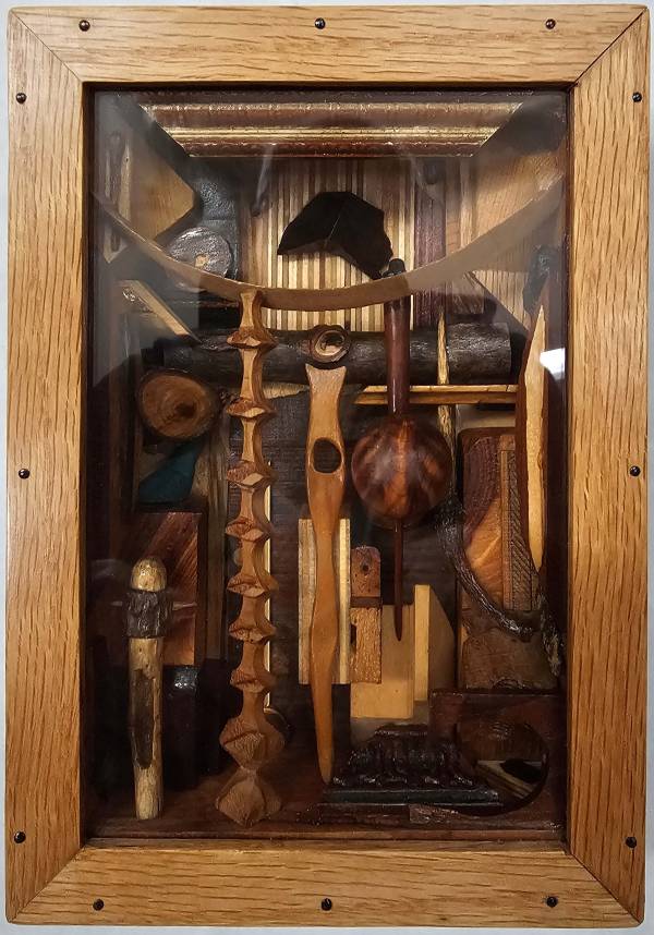 I made this assemblage for Carl Grupp for his 69th birthday because he liked some similar assemblages I had made in the past. Carl was always a very supportive mentor, friend and patron. I miss him a great deal. After Carl passed away, his family gave this piece back to me. I am very grateful to the Grupp family for the memories and generosity.